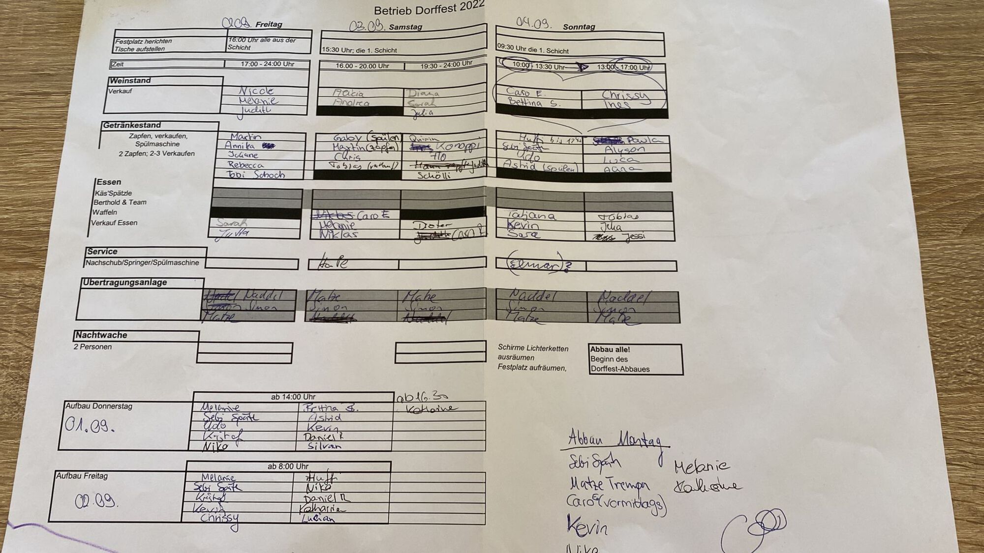 Nachdem gestern das Seenachtfest stattgefunden hat, wird es nun Zeit für das eigentlich beste und größte Fest in Konstanz, denn unser geliebtes Dorffest ist in greifbarer Nähe. Natürlich freuen wir uns alle auf Freunde, Freude und Freundlichkeit, aber natürlich ist das Event auch mit Arbeit verbunden. Deshalb schicke ich euch im Anhang den aktuellen Arbeitsplan zu.